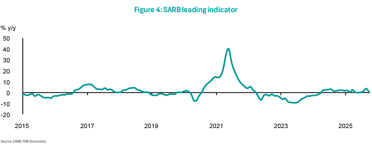 On Tuesday, the 3Q25 Gross Domestic Product (GDP) data will be released. Real GDP grew by 0.6% y/y in 2Q25, following gains of 0.8% y/y in both 1Q25 and 4Q24. On a seasonally adjusted basis, the economy expanded by 0.8% q/q. Growth was broad-based, with mining, manufacturing, and trade each contributing 0.2ppts, while finance, government, personal services, and agriculture each added 0.1ppt. Household consumption rose 0.8% q/q, total investments rebounded on inventory restocking despite weaker fixed investment, and net exports detracted from growth as exports fell more than imports. We expect quarterly GDP growth to have been maintained, albeit at around 0.2%, underpinned by the broader trade sector, alongside the mining, transport and finance sectors. The notoriously volatile agricultural sector presents risks on either side of the forecast.