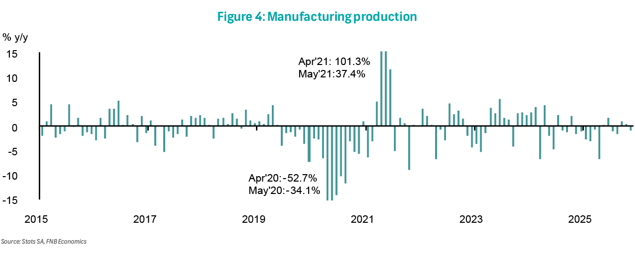 On Thursday, mining production for December will be released. Mining production (not seasonally adjusted) contracted by 2.7% y/y in November, down from 6.1% growth in October. Seasonally adjusted mining output fell sharply by 5.9% m/m, down from 2.7% in the prior month. The largest negative contributors were coal, iron ore, PGMs, and gold, while manganese ore was the largest positive contributor. In the three months to November, output increased by 1.6%, slowing from 2.1% in the preceding three months to October 2025, suggesting a weaker contribution from the mining sector to 4Q25 GDP growth.