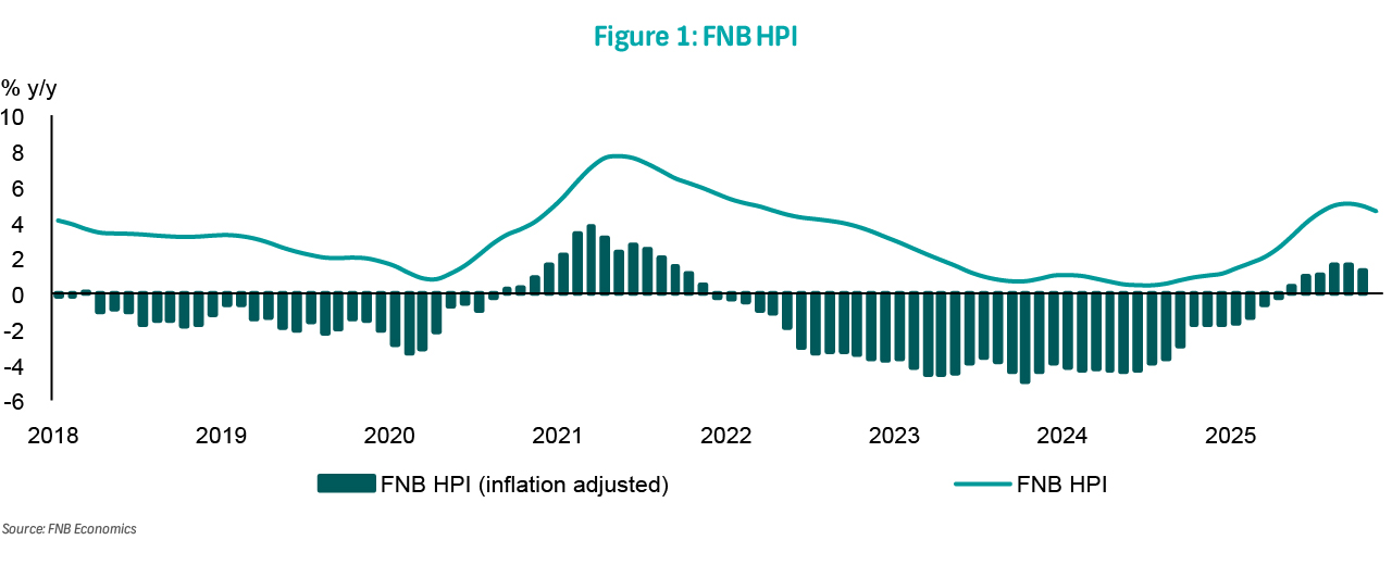 The index is compiled from FNB's own valuations database, thus based on the residential properties financed by FNB.