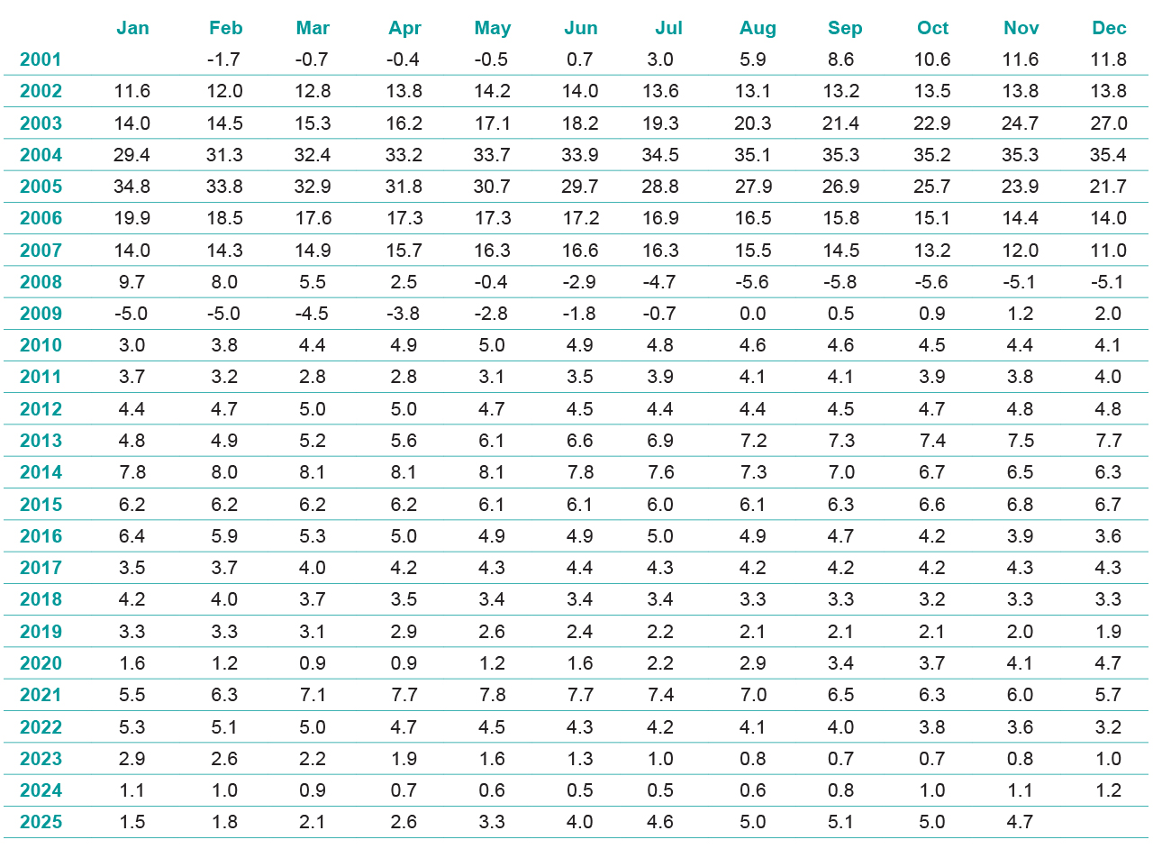 Year-to-date growth stands at 3.6%, versus 0.8% in the same period last year, and 1.5% in 2023. That said, this is still lower than 6.8% and 4.4% in the same period in 2021 and 2022 respectively, when interest rates were at an ultra-low level.