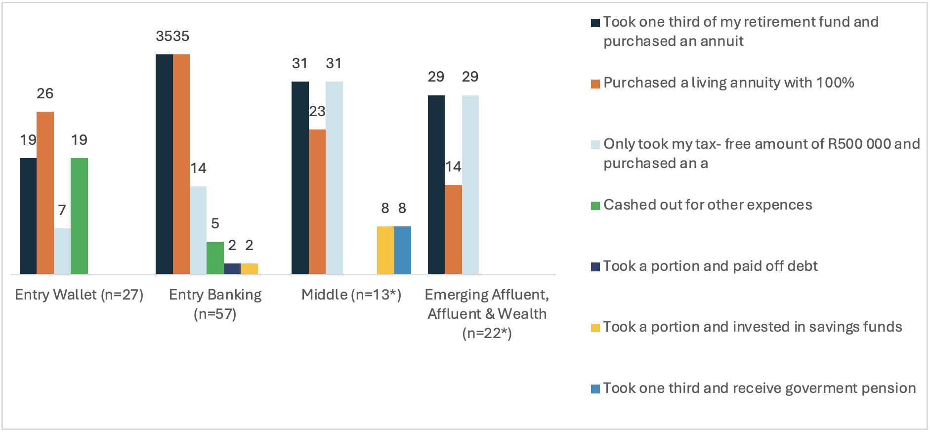In the FNB Retirement Insights Survey 2025, of the over 60's, almost 20% of Entry Wallet cashed out of their retirement funds to pay other expenses. The temptation of accessing funds has a large impact on your overall retirement savings pot as you basically need to start from scratch and will more than likely need to double your contributions to catch up.